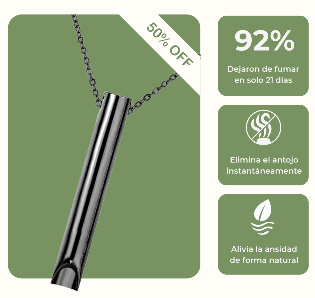 Sí. El Collar Respira actúa sobre el sistema nervioso parasimpático, el encargado de la relajación natural del cuerpo. Al dirigir tu respiración, reduce el estrés y reemplaza el acto físico de fumar con un ritual saludable. Miles de personas han logrado dejar el cigarro o el vape con este método.